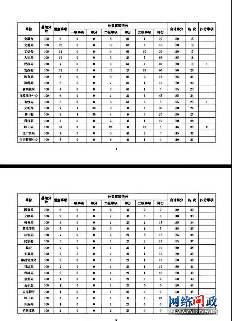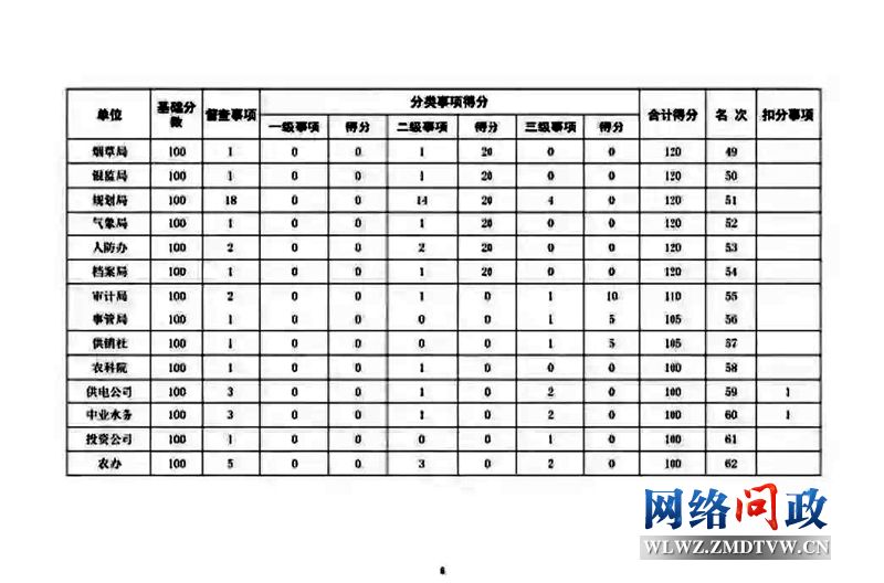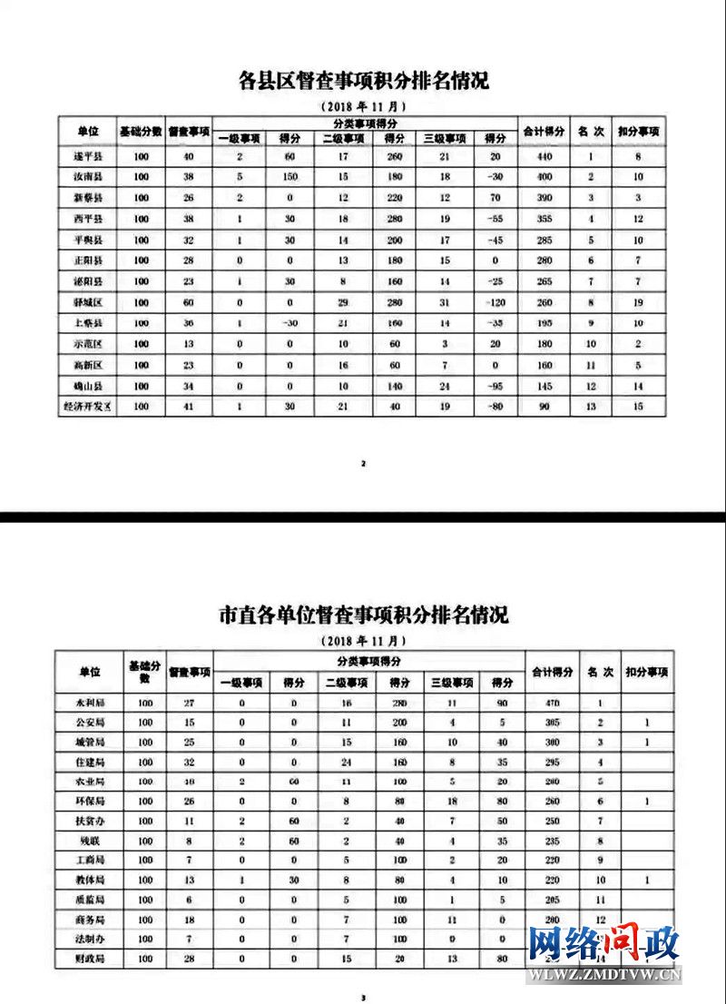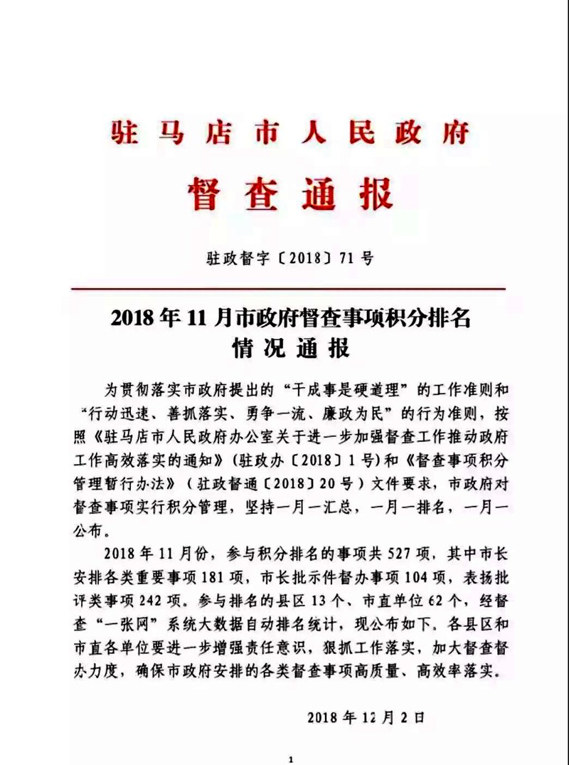 11月市政府督查事项积分排名情况通报