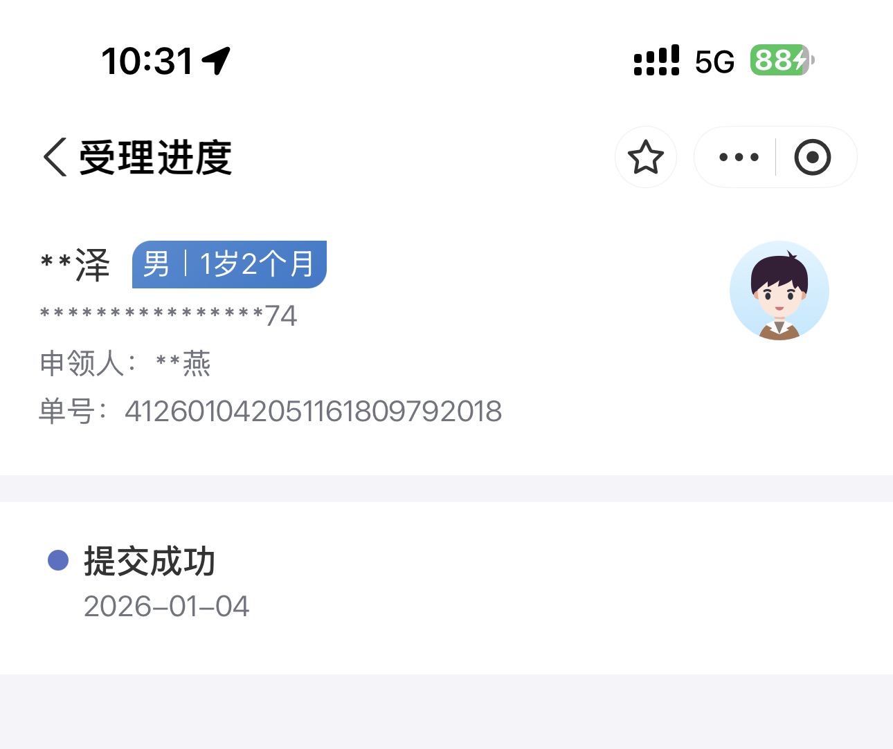 | 留言内容 | 本人住址:河南省驻马店市驿城区东风街道办事处周庄村委 本人于2026年1月4日提交育儿补贴申请,截至2026年3月6日已远超政策规定的30个工作日审核时限,至今仍未审批。此前反映问题后又等待一周,仍无结果。恳请相关部门尽快核查、加快审批流程,及时给予明确答复。